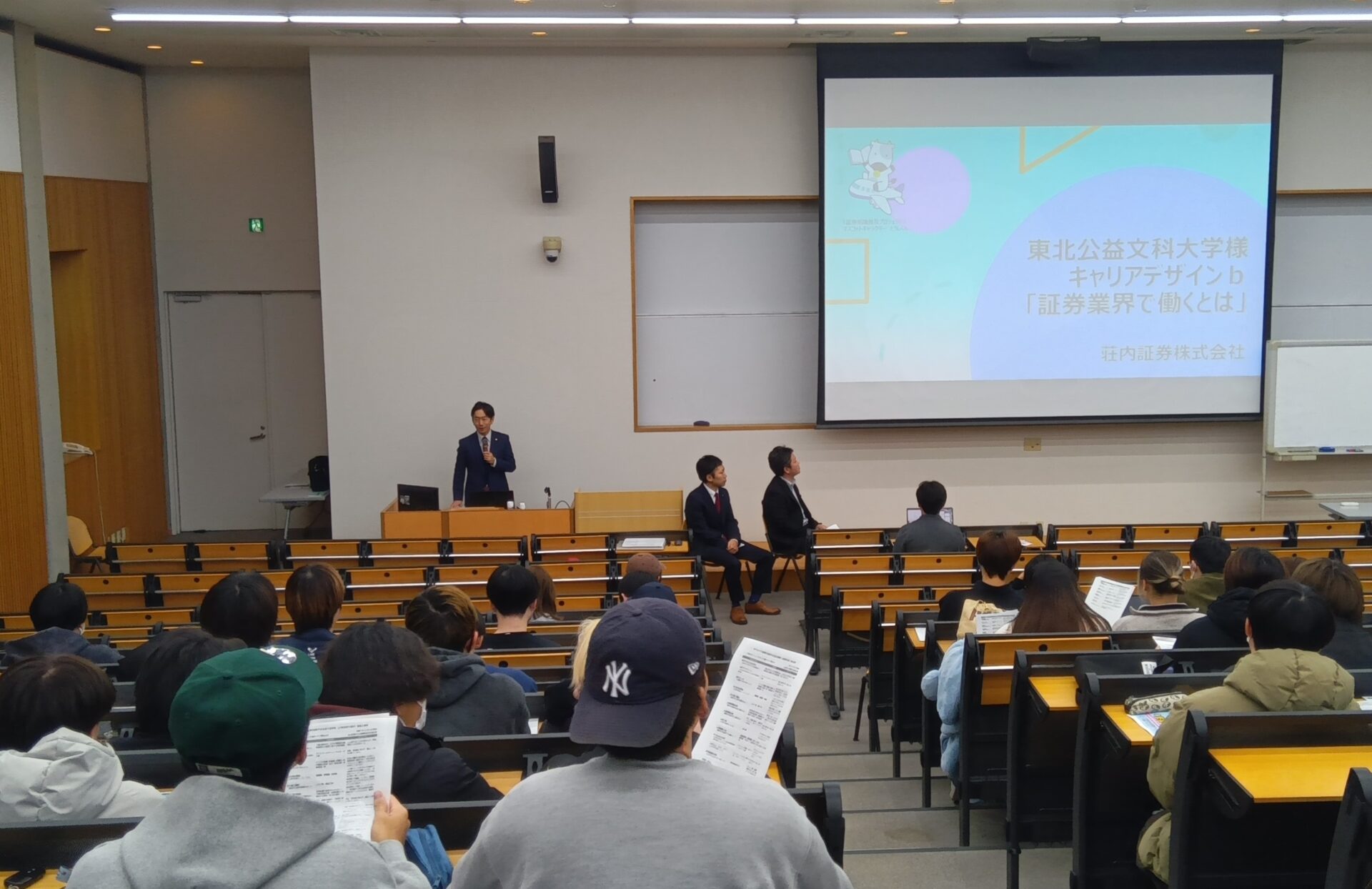 東北公益文科大学様の「キャリアデザインb」の授業にお招きいただき、『証券業界で働くとは』について卒業生講和を行いました。